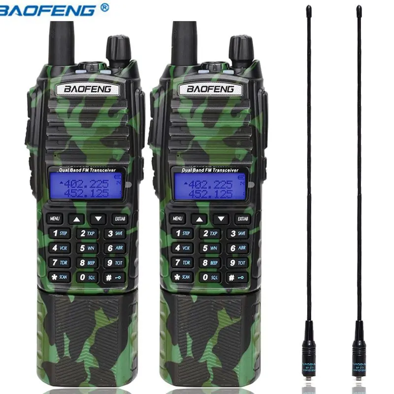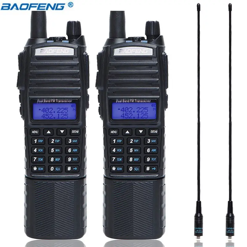 2pcs Baofeng UV-82 Walkie Talkie 3800mAh Battery 5W VHF UHF Portable Hunting Transceiver Dual Band Ham Radio 2 NA-771 antenna