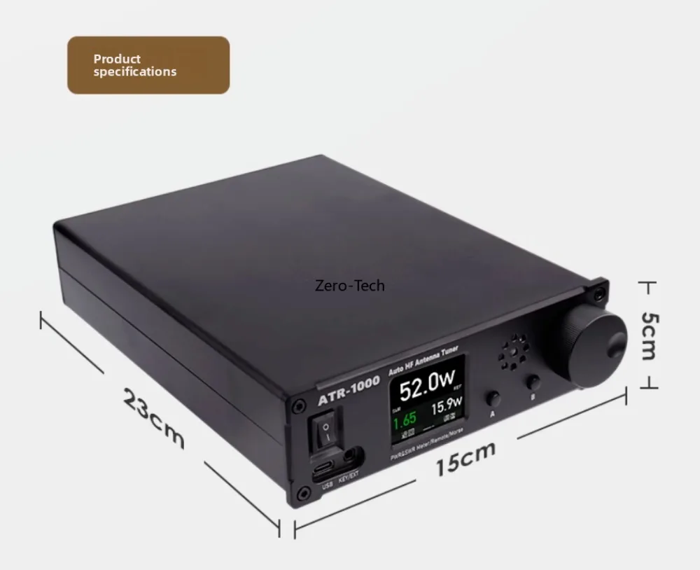 1.Compact High-Power Design: This automatic antenna tuner is engineered for portability and power, measuring just 230 x 150 x 50 mm and weighing only 1.3kg, making it suit for field operations or limited-space setups.