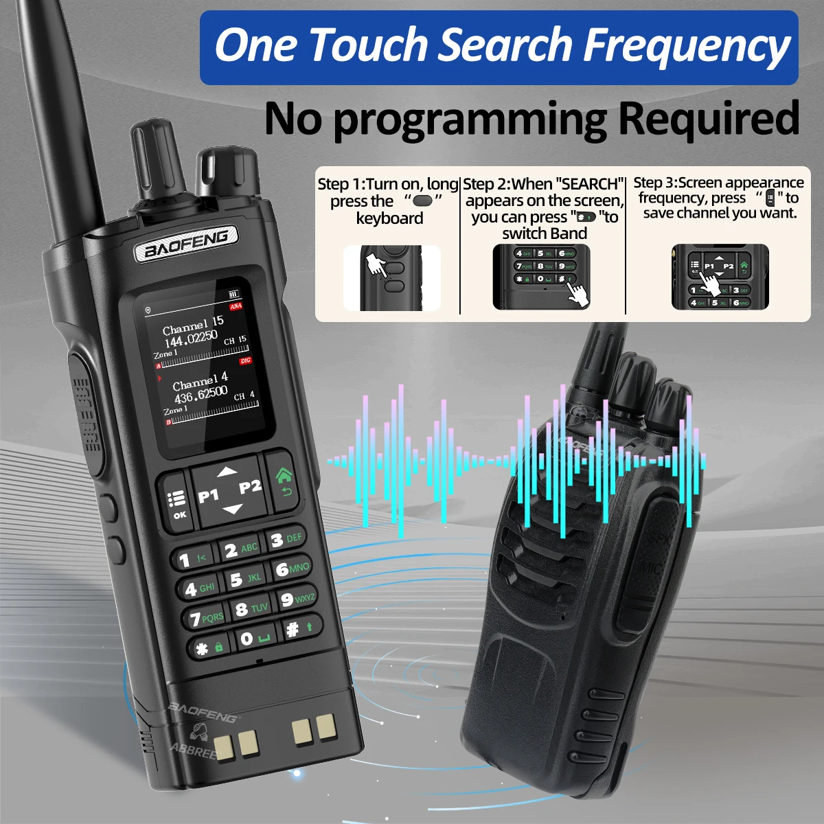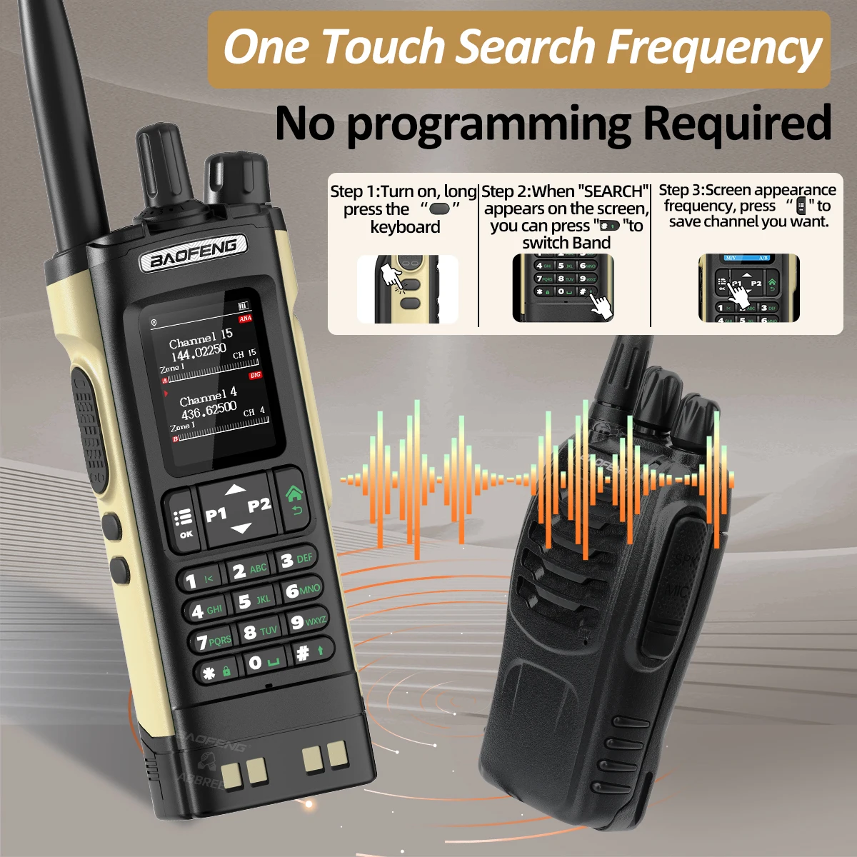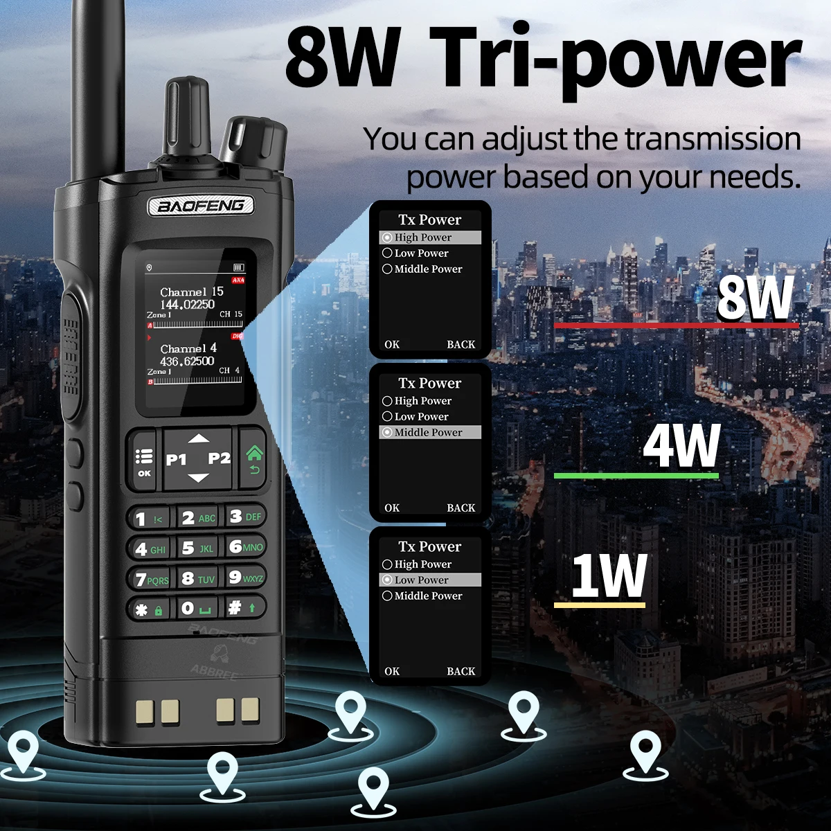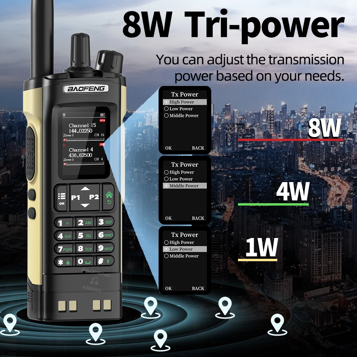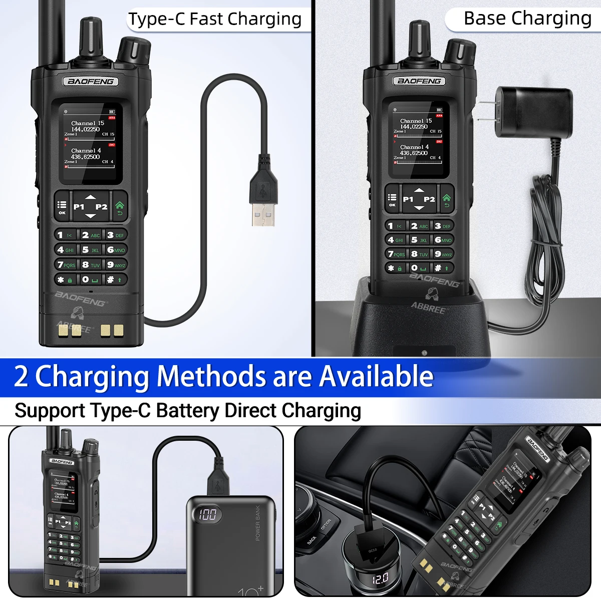 BAOFENG DM-32 digital walkie talkie with AM:108-136MHz,VHF:136-174MHz,UHF:400-470mHz, 4000 channels, dual mode (digital, analog) .Direct mode dual slot communication achieves two groups of calls at a frequency point at the same time so that the communication efficiency is doubled and frequency resources are saved.