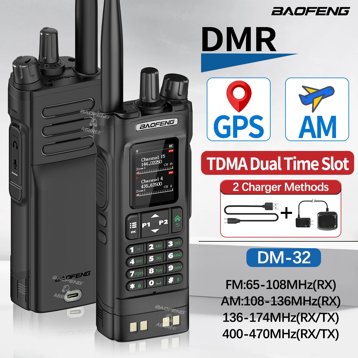BAOFENG DM-32 DMR Digital Walkie Talkie GPS Dual Mode Analog TDMA Dual Time Slot Air Band APRS Digital Call for UV-5R UV-32 Ham Radio