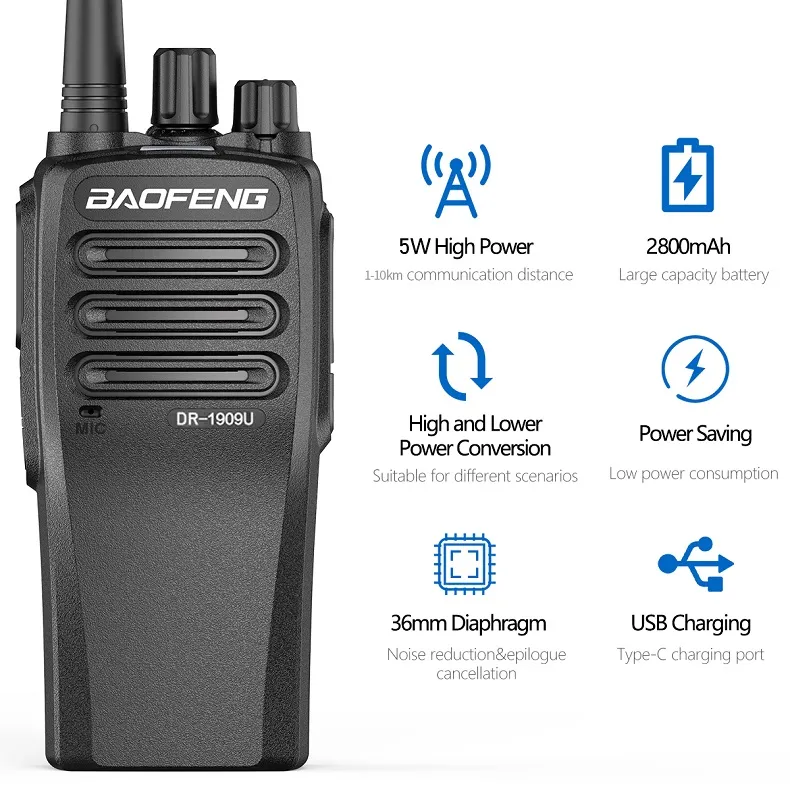 DR-1909U DMR Handheld Digital Analog UHF Wireless Walkie Talkie 5W 2800mAh Battery IP67 Dust-proof Anti-fall