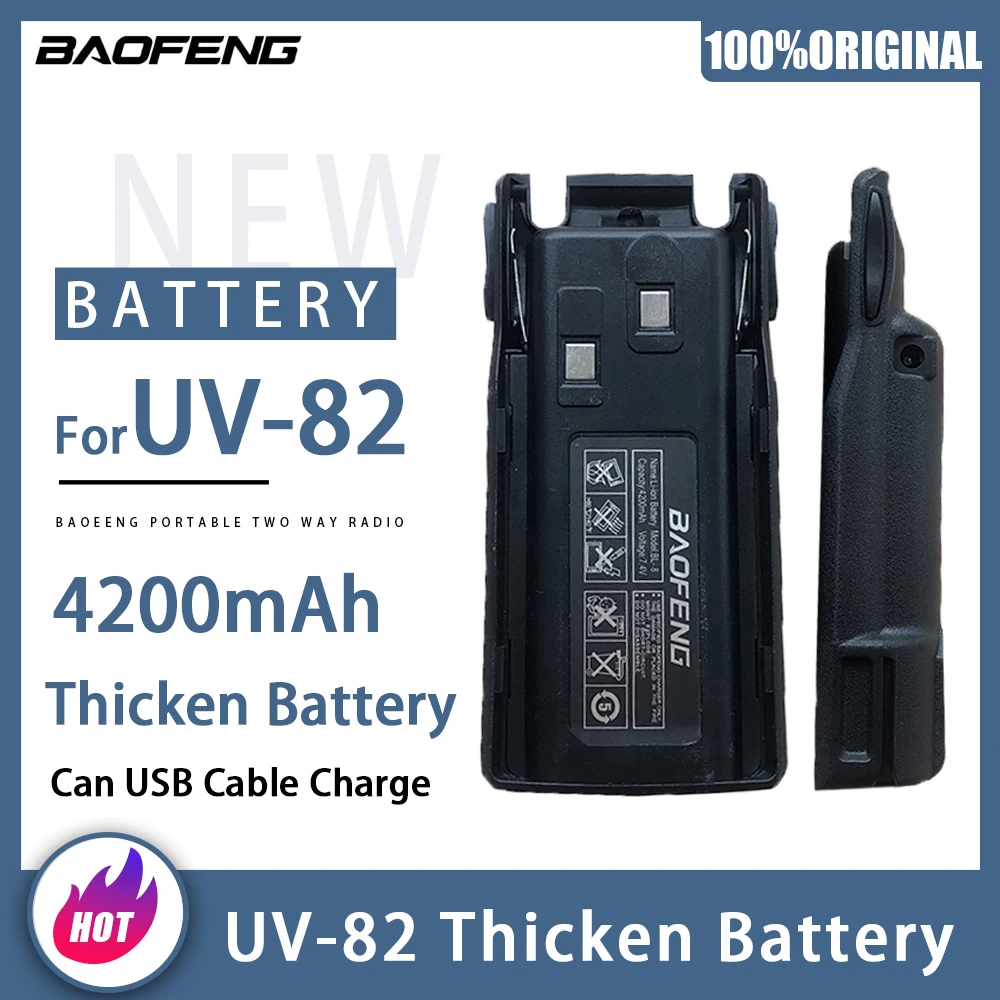 2022 New Baofeng UV-82 Battery Thicken 4200mAh Li-ion Battery for Walkie Talkie UV82 UV8D Two Way Radios Can USB Cable Charging