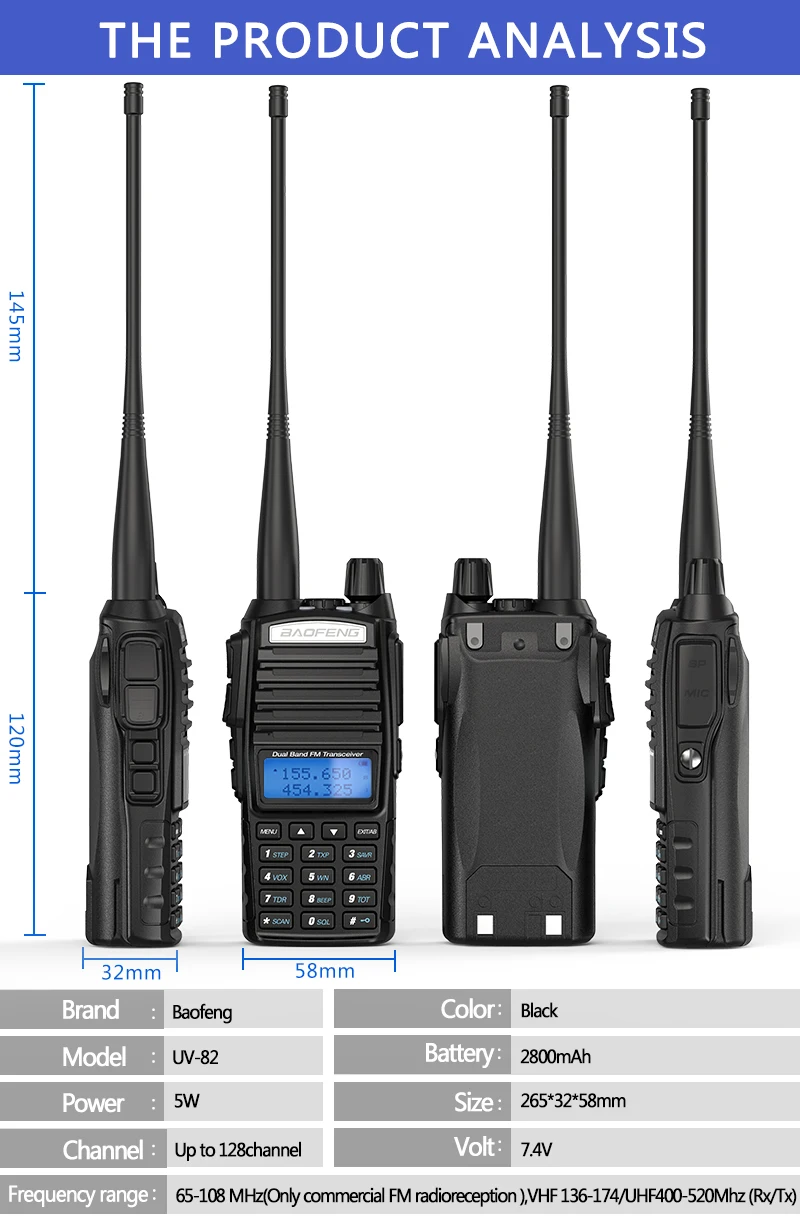Baofeng UV-82 5W Dual PPT Walkie Talkie VHF/UHF Dual Band Portable Amateur Police Scanner Ham Radio