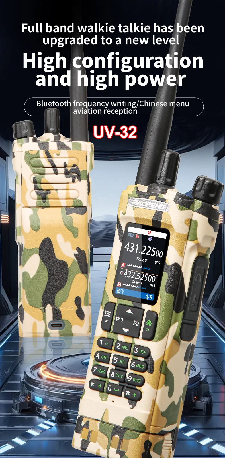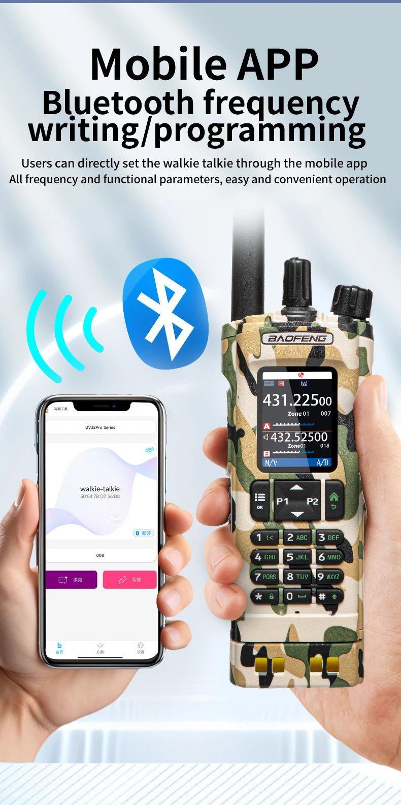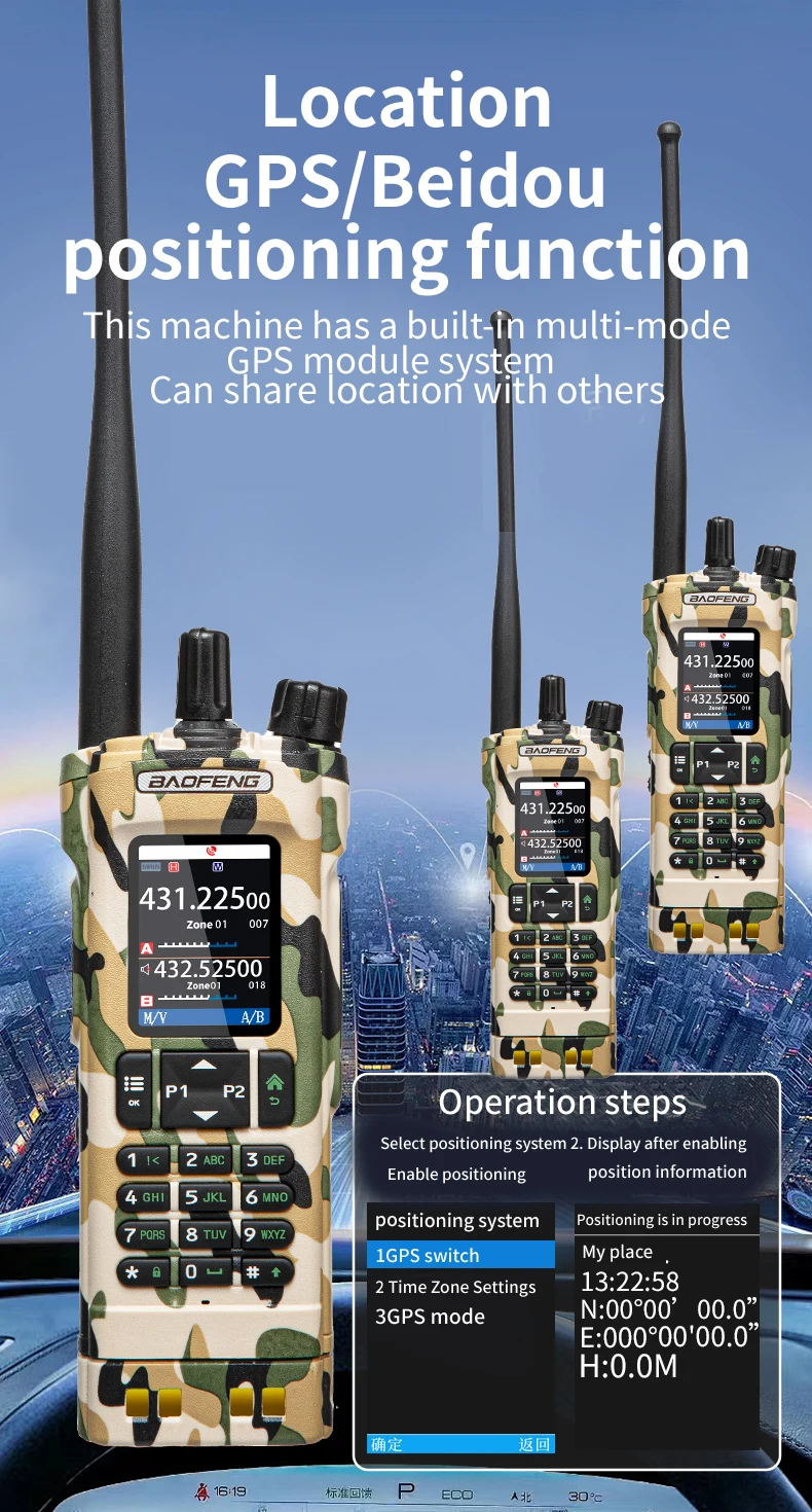 BAOFENG UV32 GPS 10W Multi Band Programming Wireless Copy Frequency NOAA Long Range Ham Two Way Radio Camping UV-32 Walkie Talkie