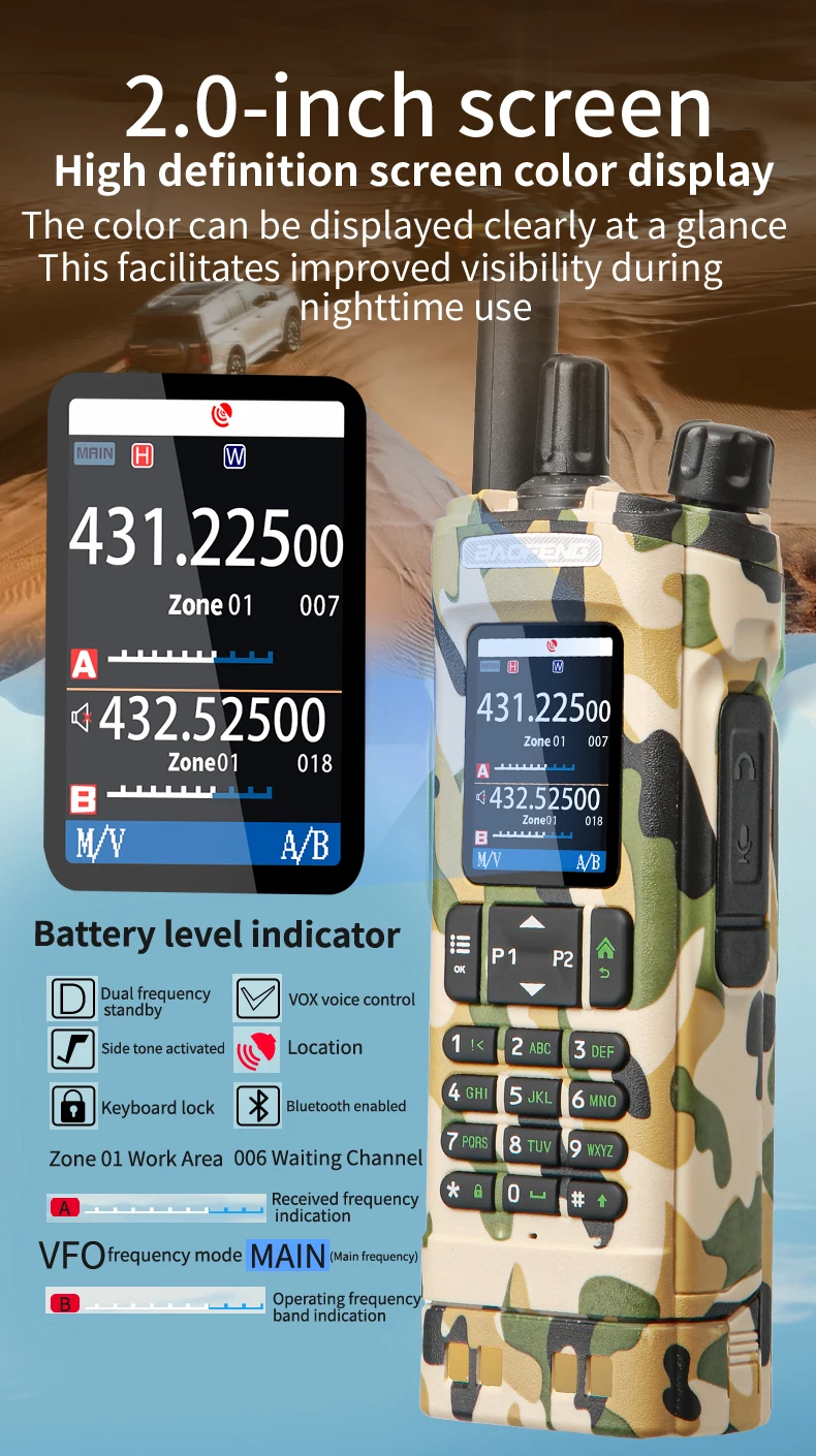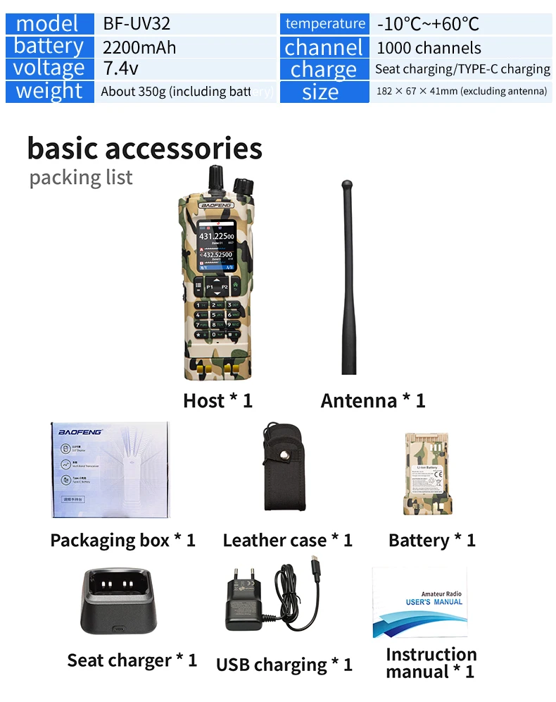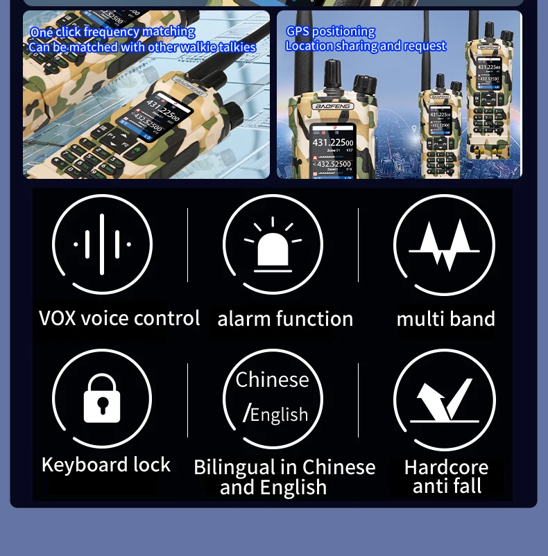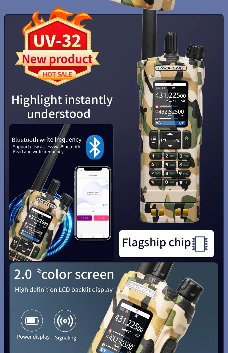 BAOFENG UV32 GPS 10W Multi Band Programming Wireless Copy Frequency NOAA Long Range Ham Two Way Radio Camping UV-32 Walkie Talkie