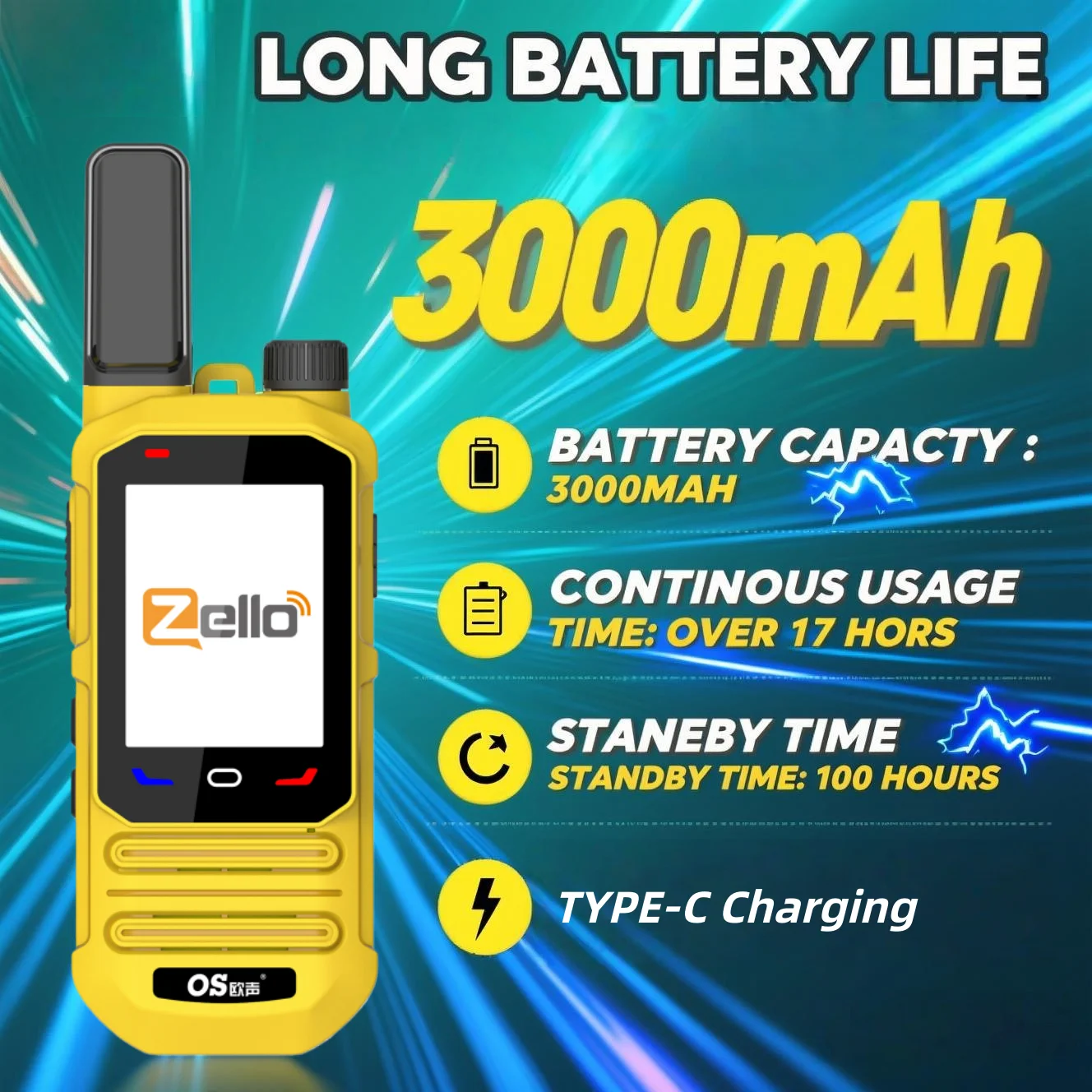 - Optimized for Zello and similar PoC apps, turning the device into a smart network radio with channels, groups, and instant PTT calling.