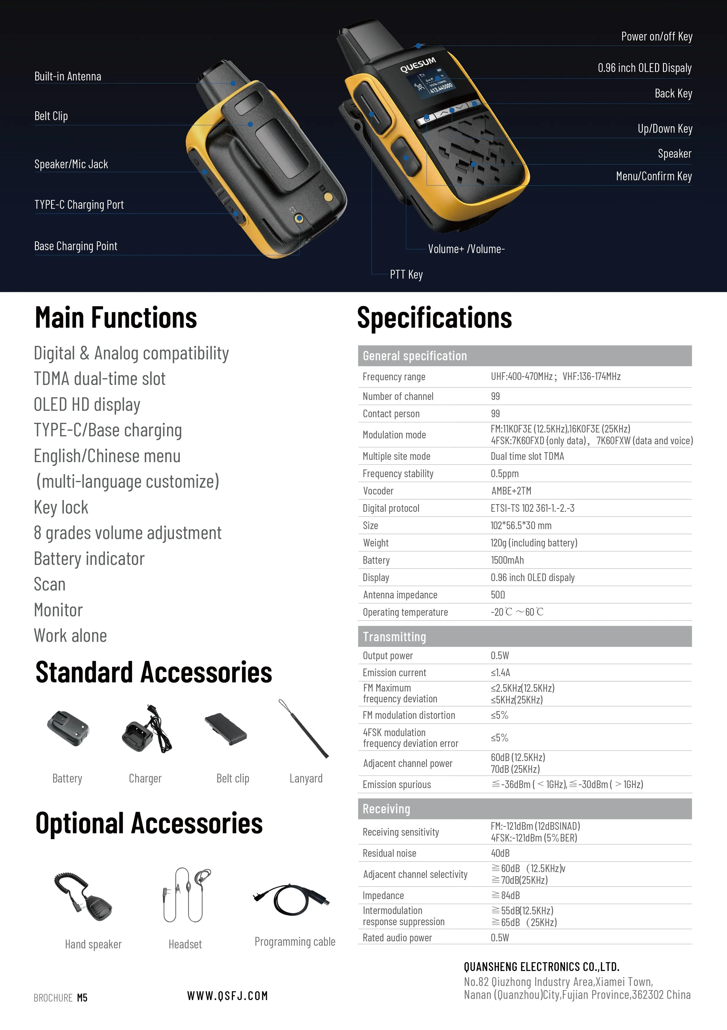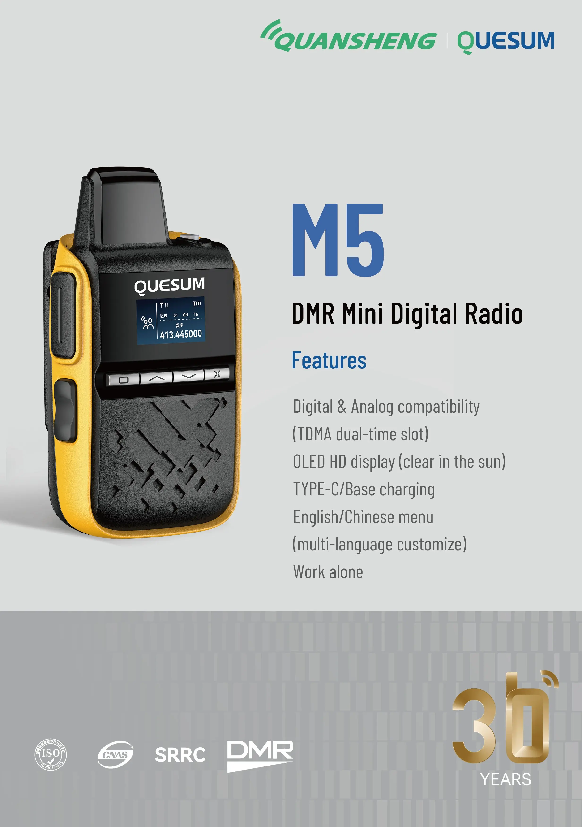 QUANSHENG DMR MiNi Digital Radio M5-License free,Digital &Analog compatility,TDMA dual-time slot,OLED HD display,TYPE-C charging,Chinese and English menu,Color code,etc.