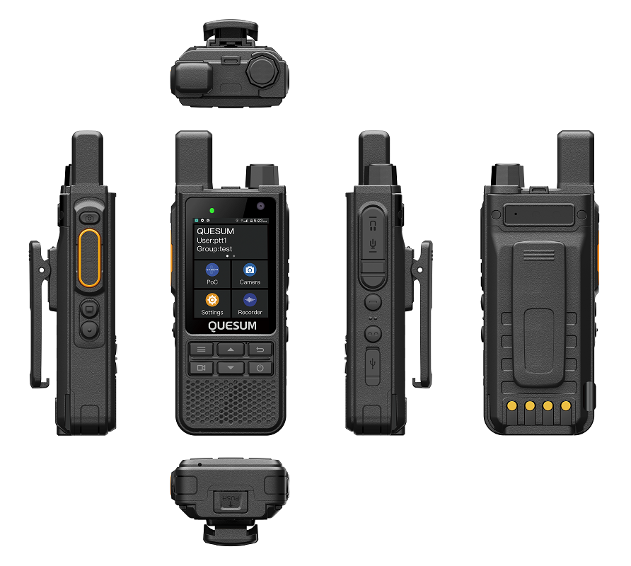 QUESUM MP70s 4G Smart PoC Radio: Android 10, Memory 1+8G (T Card Expandable to 256GB), 2.4-inch 240*320 QVGA Display, Dual Camera: Front 2 Megapixels & Back 5 Megapixels, Bluetooth: 4.2BLE, Wi-Fi: 2.4GHz, 802.11b/g/n, 4300mAh Big Battery (Radio Body Type-C Charging), Support GPS/Beidou/GLONASS/Galileo/QZSS/SBAS (Support Independent Beidou Positioning), One Key Real-time Video, One Key SOS (through Platform) etc
