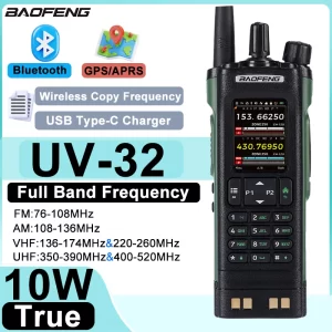 10WÂ Baofeng UV-32 Walkie Talkie GPS Bluetooth Programming Multi Band Wireless Copy Frequency Type-C Ham Radio Updated UV-25M AR-152