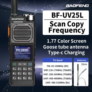 Baofeng UV-25L Handheld Tri-Band Walkie Talkie Copy Frequency High Powerful Portable Type-C Outdoor Two Way Radio BF-UV25L Long Range Ham Radio