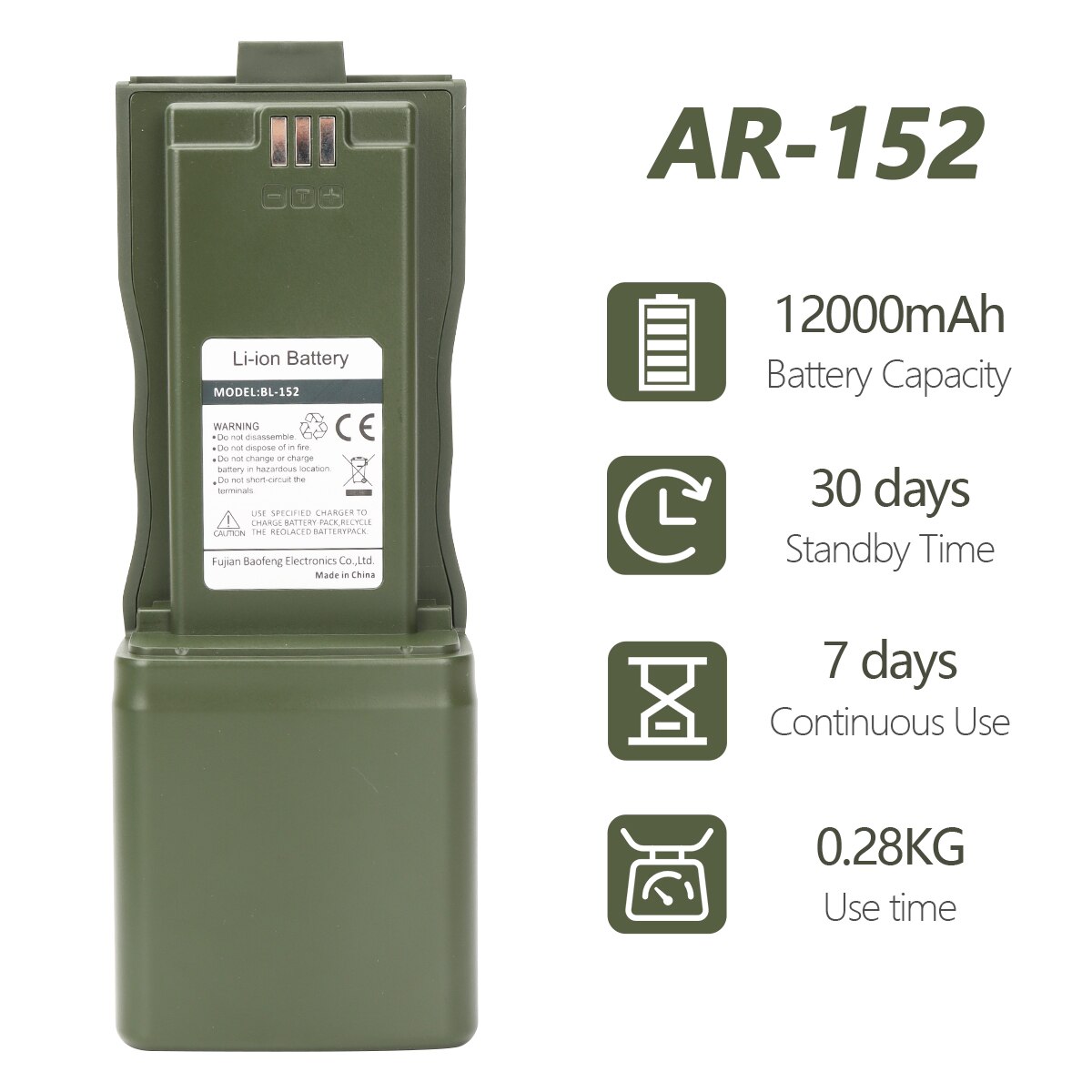 12000mAh Large Capacity Baofeng Li-ion Battery for AR-152 Tactical Walkie Talkie Support USB Charger