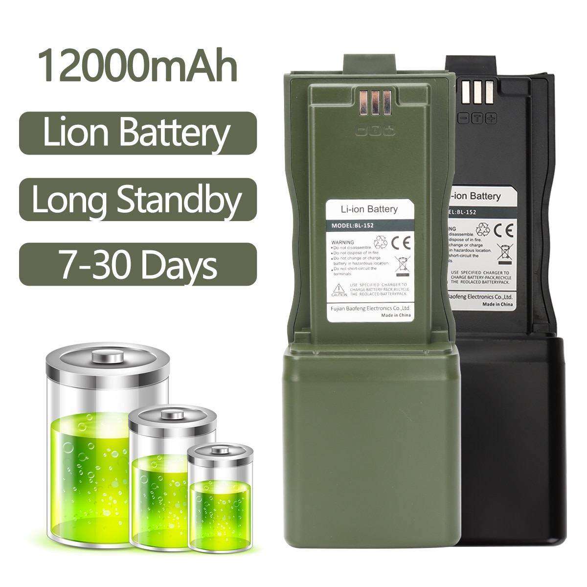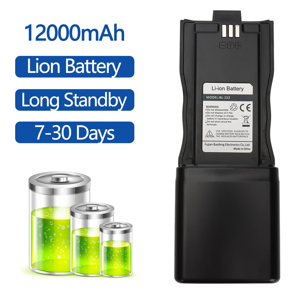 12000mAh Large Capacity Baofeng Li-ion Battery Compatible With AR 152 Tactical Walkie Talkie Support USB Charger