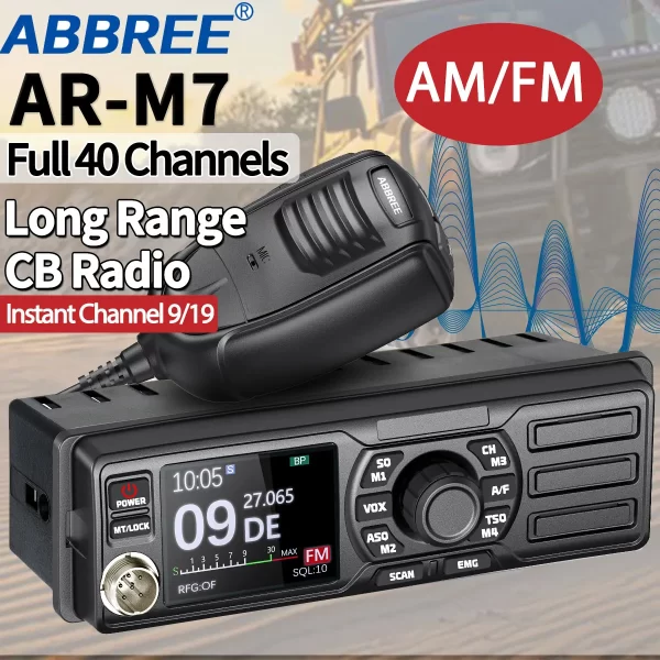 This AR-M7 CB Radio can meet your remote communication needs, keeping you stay connected on the road and access to all 40 CB channels——Easy operation.FCC ID:2BDQ3AR-M7