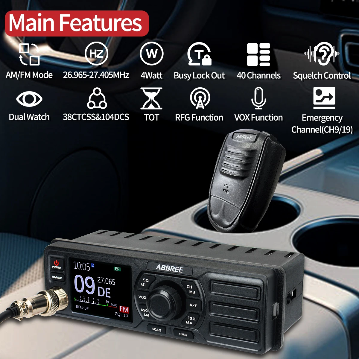 ABBREE Walkie Talkie AR-M7 CB Mobile Radio 27 MHz AM Air Band Long Range Dual Mode Watch Emergency Channel 9/19 FM Vox Car Radio