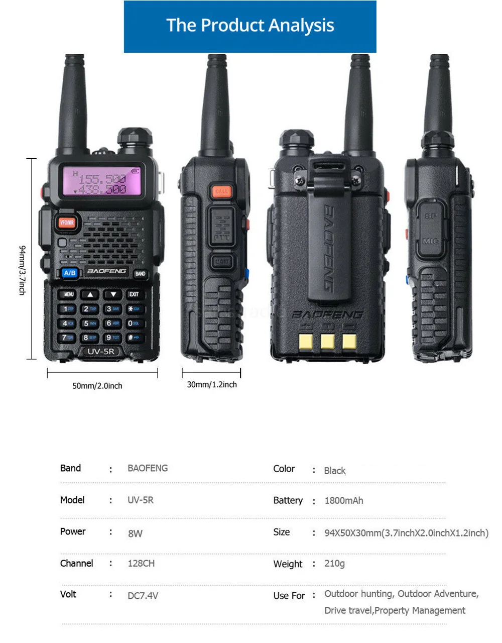 10PCS Baofeng UV-5R 8W Walkie Talkie Triple Power 8/4/1 Watts VHF UHF Dual Band UV5R Portable Two Way Radio