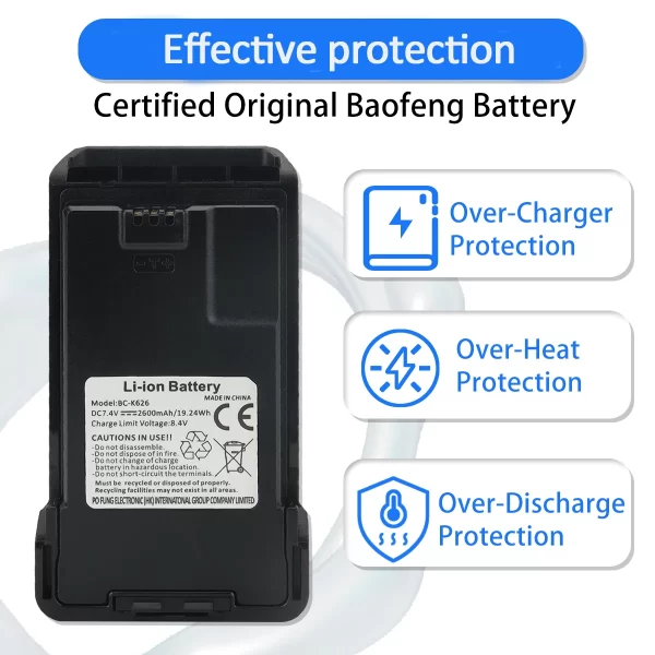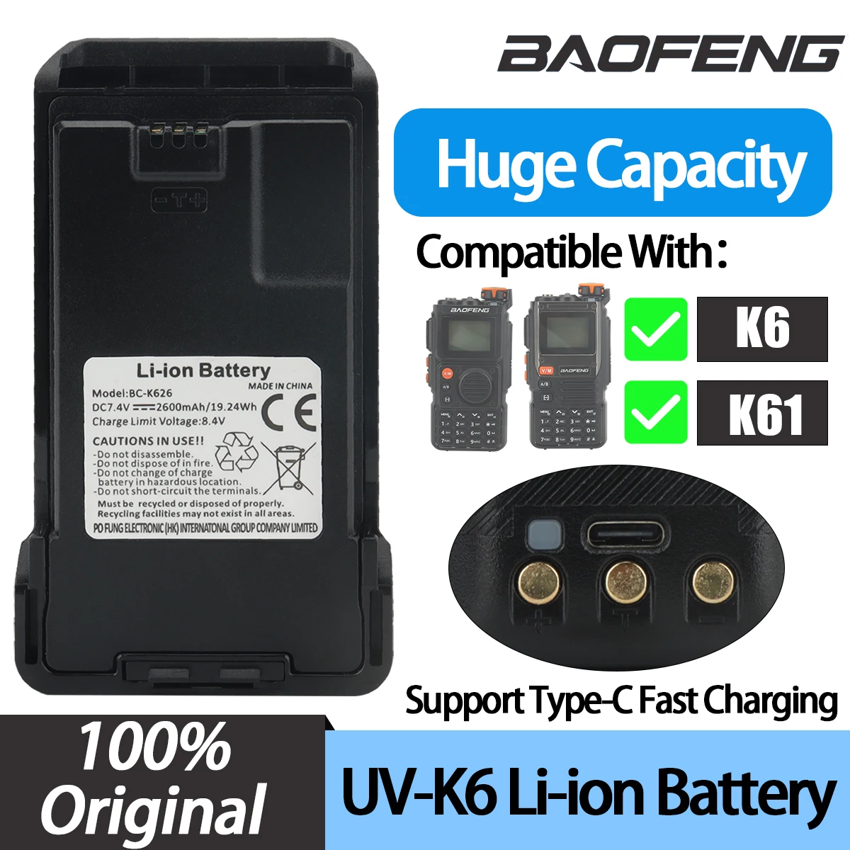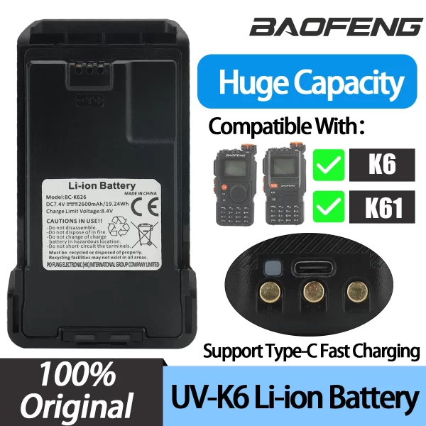 Baofeng UV-K6 UV-K61 DC 7.4V High Capacity Li-ion Battery for UV-K6 UV-K61 Walkie Talkie Ham Portable Two Way Radio