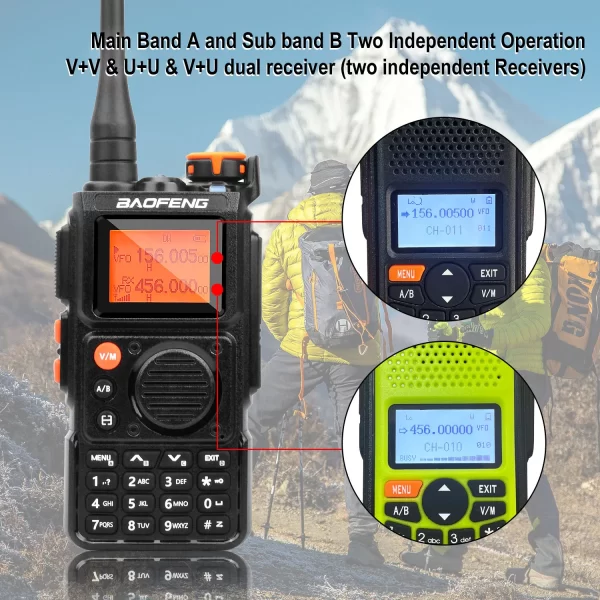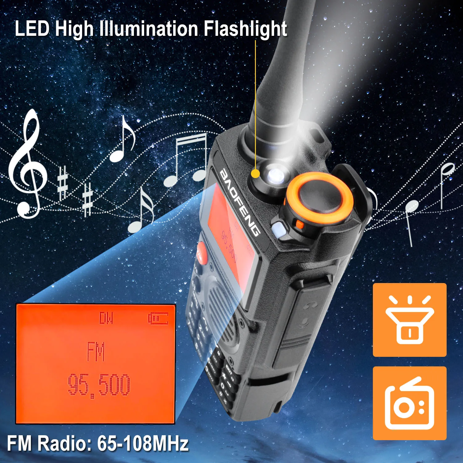 Baofeng K6 2M 70CM Air Band VHF UHF Dual Wait Multi-Band Wireless Frequency Copy Noise Cancellation 999Ch FM Amateur Ham Radio 1750Hz Tone Burst with 2600mAh USB-C Rechargeable Li-ion Battery Pack and Headset