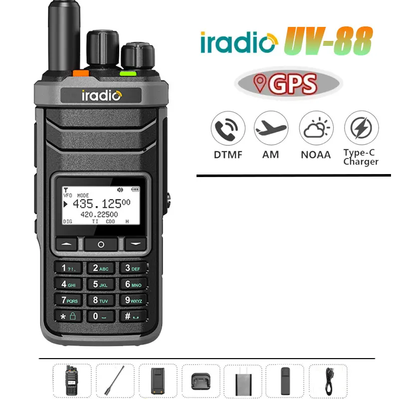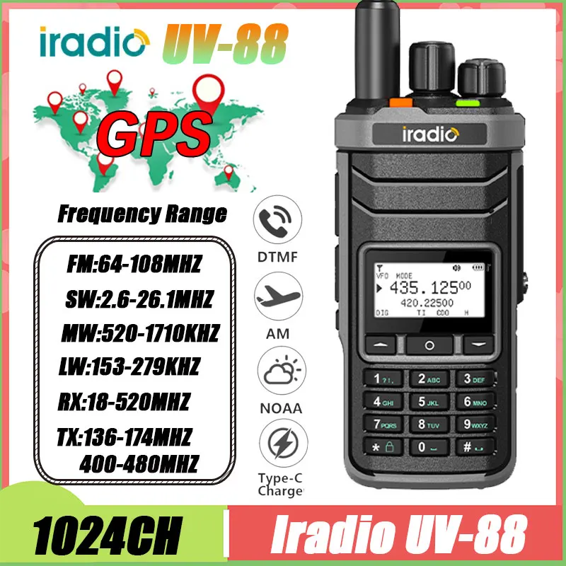 Iradio UV-88 GPS Walkie Talkie Shortwave UV88 Radio Type-C Charging 18-520mhz Receiving NOAA 1024 Channel Frequency Channel Scan