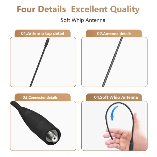 *Soft Whip Antenna:The soft antenna is easy to bend and not easily damaged, making it suitable for use in a variety of environments.
