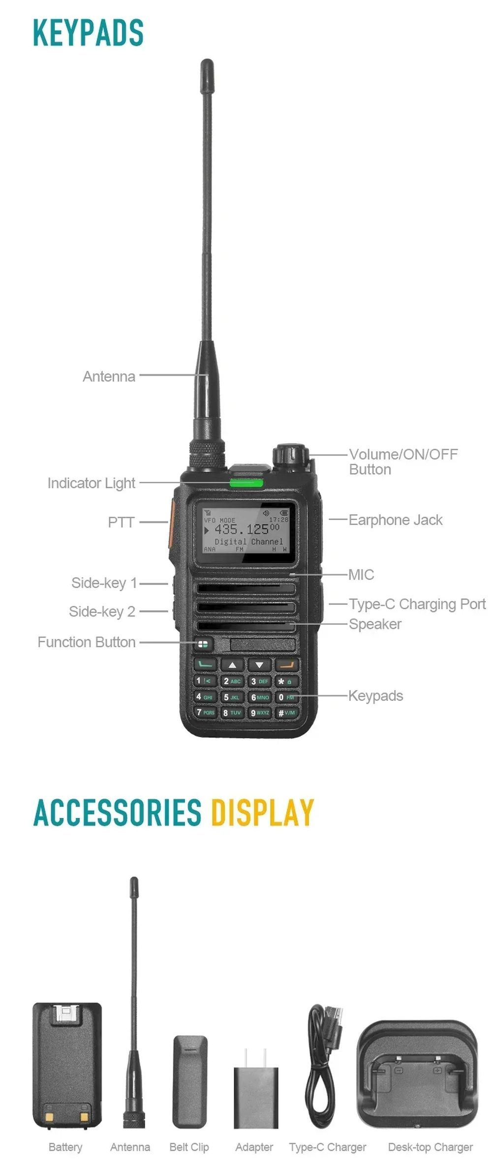 Talinfone UV-4R DMR Radio Digital Walkie Talkie Dual Mode Analog Two Way Radio Dual Time Slot Ham Radio 1024 Channels