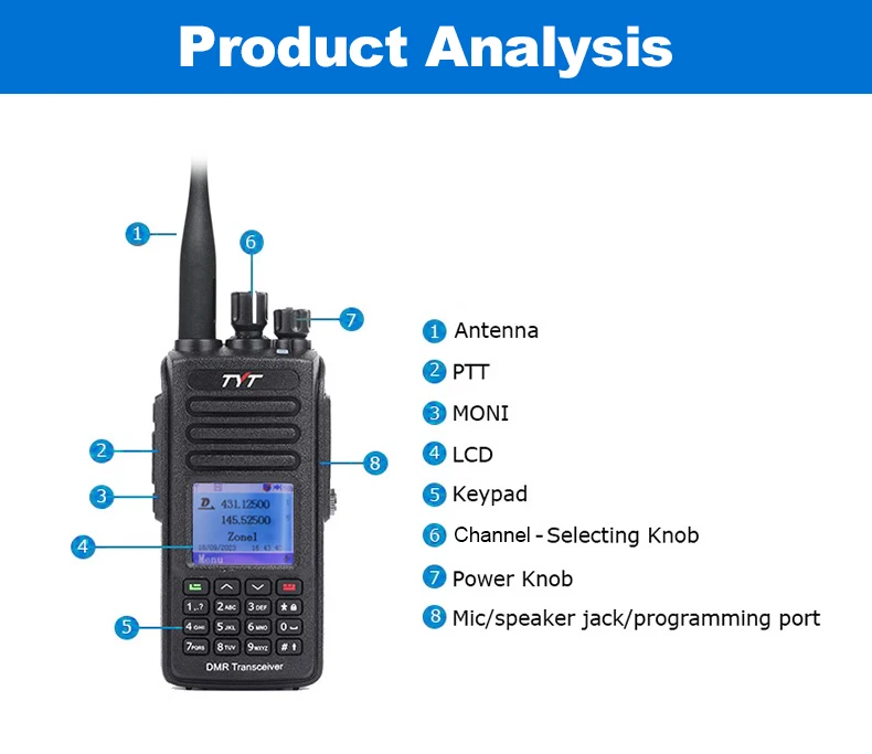 2pcs NEW 10W TYT MD-UV390 PLUS AES256 Encryption DMR Digital Radio IP67 Waterproof Dual Band 136-174&400-480mhz Walkie Talkie Long Range