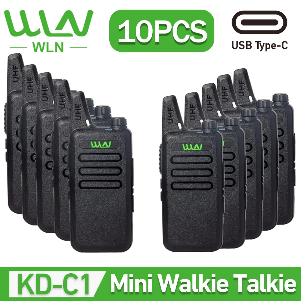 10PCS WLN KD-C1 Mini Handy Portable Walkie Talkie UHF 400-470 Mhz KD-C1T Ham Radio Type-C Charging Mi-Ni Walkie Talkie