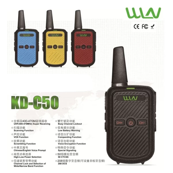2PCS/Lot WLN KD-C50 MINI Handheld Transceiver KDC50 UHF Two Way Radio Ham Communicator Radio Station 10KM 5W Walkie Talkie