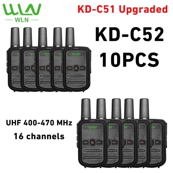 10PCS WLN KD-C52(C51 Upgraded) Mini Handheld Transceiver UHF400-470MHz Two Way Radio 16CH Walkie Talkie