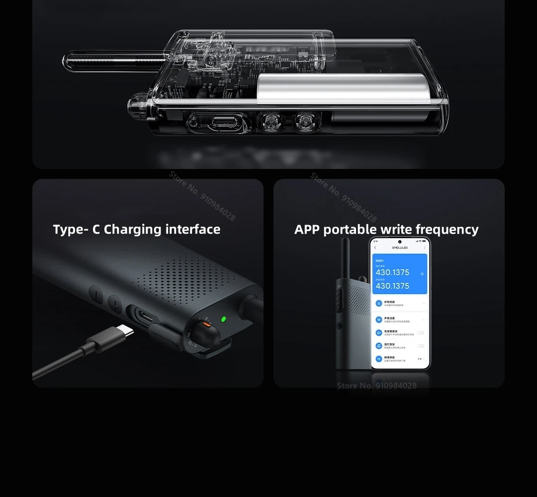 New Xiaomi Walkie Talkie 3 Chat Version 3W Transmission Power Fast Frequency Match Type-C 1-5km Distance APP Writing Frequency